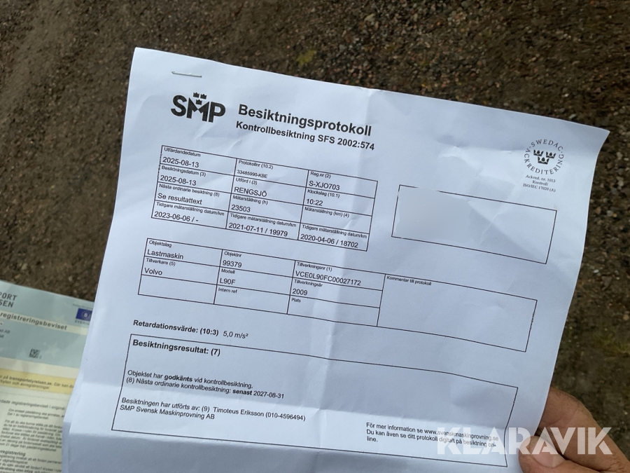 • Serie/chassinummer framgår