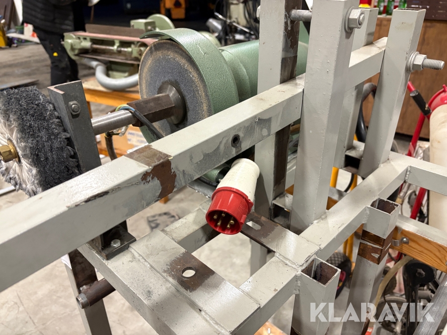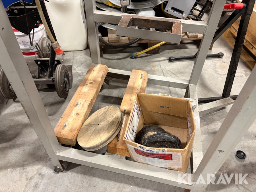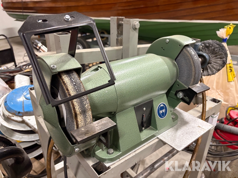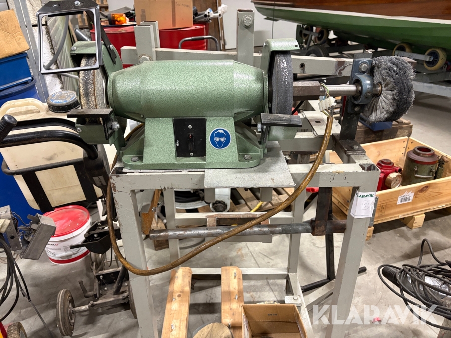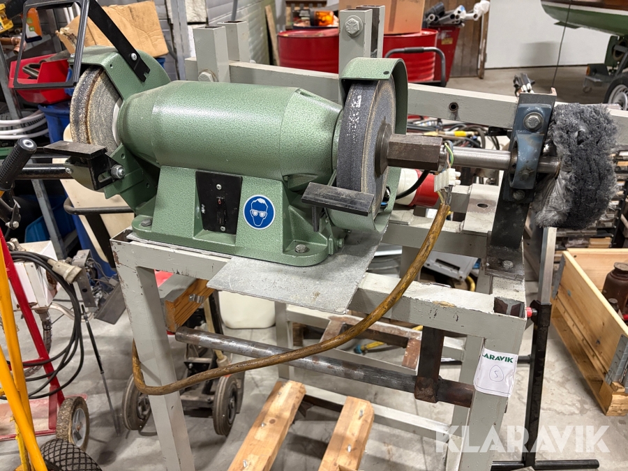 Slipmaskin på ställning med tillbehör