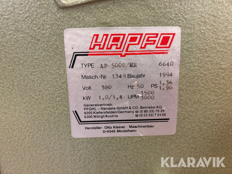 Boka frakt? Det finns ingen specifik information om frakt för just det här objektet, men om du skickar oss en förfrågan via vårt fraktformulär, så undersöker vi möjligheten. Paket, EU-pall eller större maskin? Klaravik har fraktavtal med Schenker och i de fall vi kan hjälpa till med frakt gäller det objekt som ryms i paket eller inom en EU-pall (upp till 120*80 cm och 990 kg). Det går att beställa frakt inom Sverige, dock inte till utlandet. Vid frakt på större maskiner rekommenderar vi gärna transportföretag som du kan kontakta.