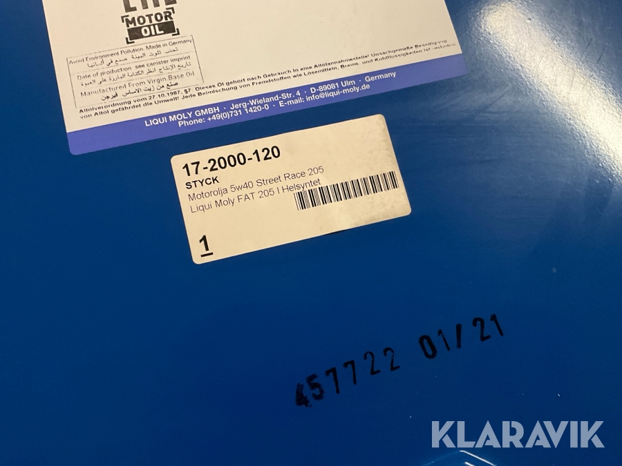 Olja Liqui Moly Motorolja 4t synth 5w-40 race fat 205L oöppnad