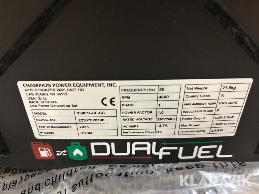 Generator Elverk Champion power equipment 93001i-DF-SC