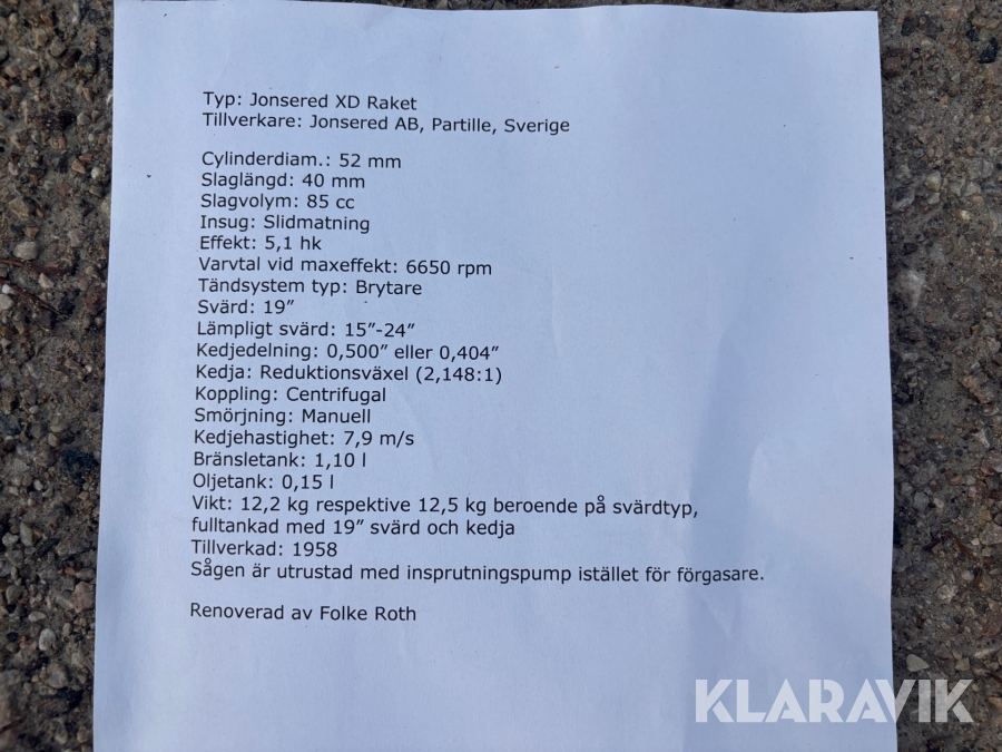 Veteranmotorsåg Jonsered XD Raket