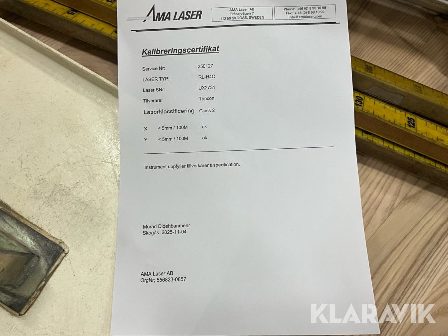 Planlaser Topcon RL-H4C kalibrerad