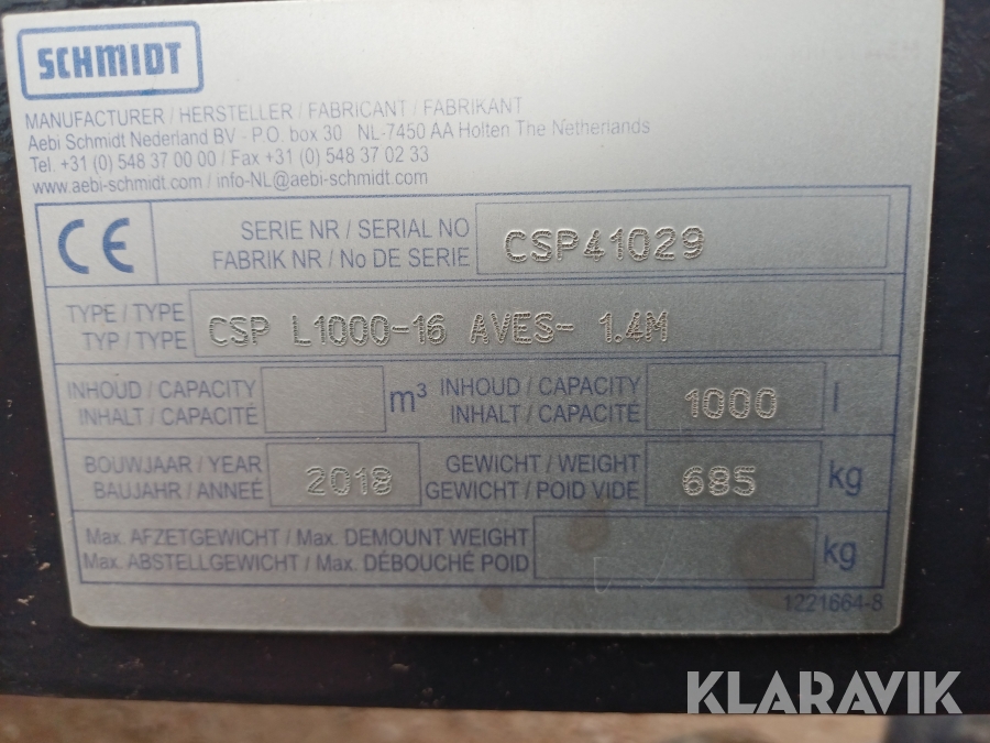 Boka frakt? Det finns ingen specifik information om frakt för just det här objektet, men om du skickar oss en förfrågan via vårt fraktformulär, så undersöker vi möjligheten. Paket, EU-pall eller större maskin? Klaravik har fraktavtal med Schenker och i de fall vi kan hjälpa till med frakt gäller det objekt som ryms i paket eller inom en EU-pall (upp till 120*80 cm och 990 kg). Det går att beställa frakt inom Sverige, dock inte till utlandet. Vid frakt på större maskiner rekommenderar vi gärna transportföretag som du kan kontakta.