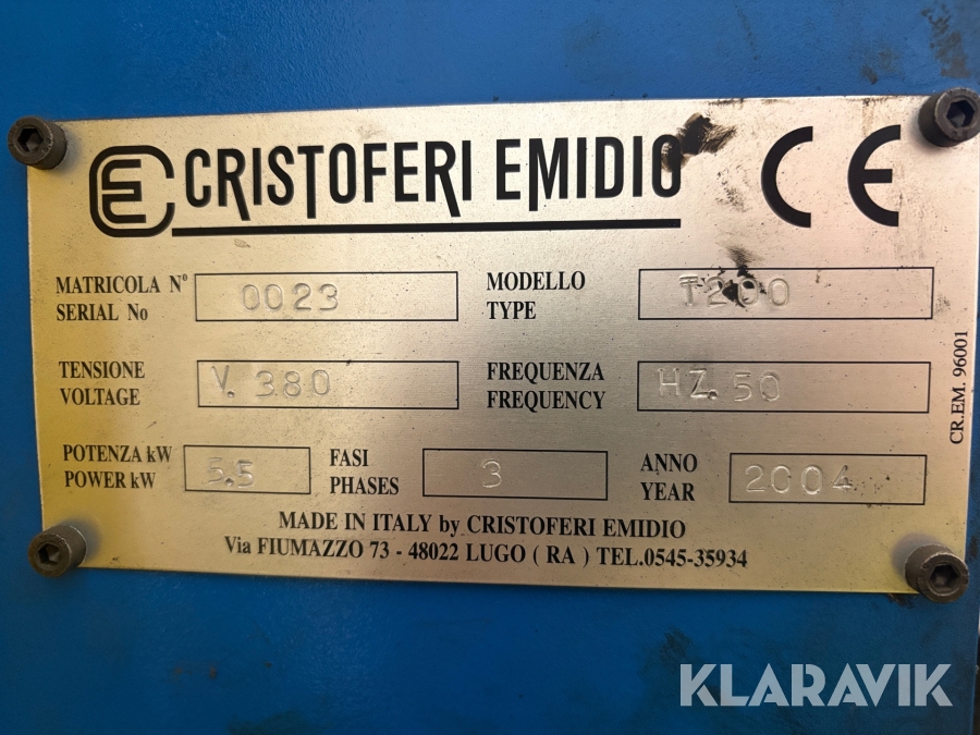 Däckpress till massiva hjul Cristoferi Emidio T200