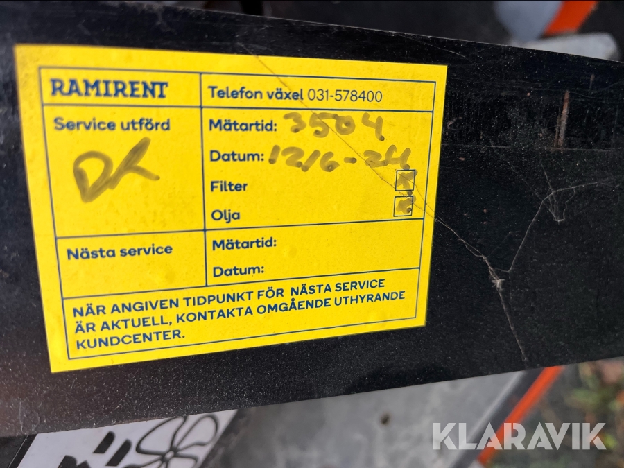Läs om metodikenPga platsbrist är det viktigt att du som köpare hämtar inom 12 dagar från auktionsavslut. Vid frågor om frakt kontakta trade@ramirent.se.
