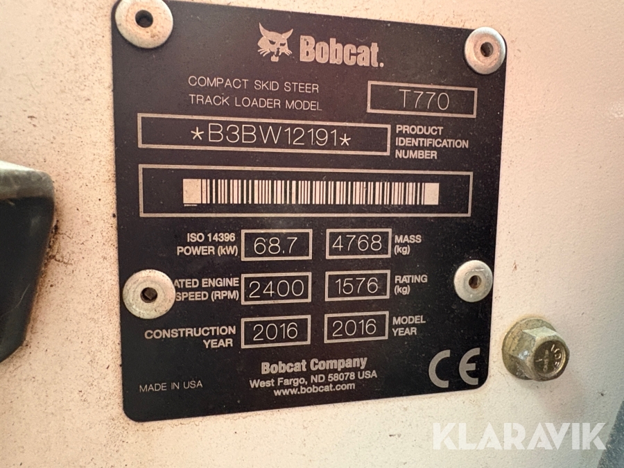 Kompaktlastare Bobcat T770 med skopa och gafflar