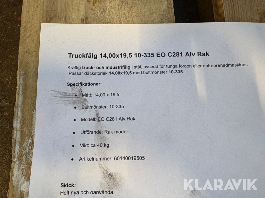 Fälg Accuride 10-335 EO C281 Alv Rak Avsedd för tunga fordon.
