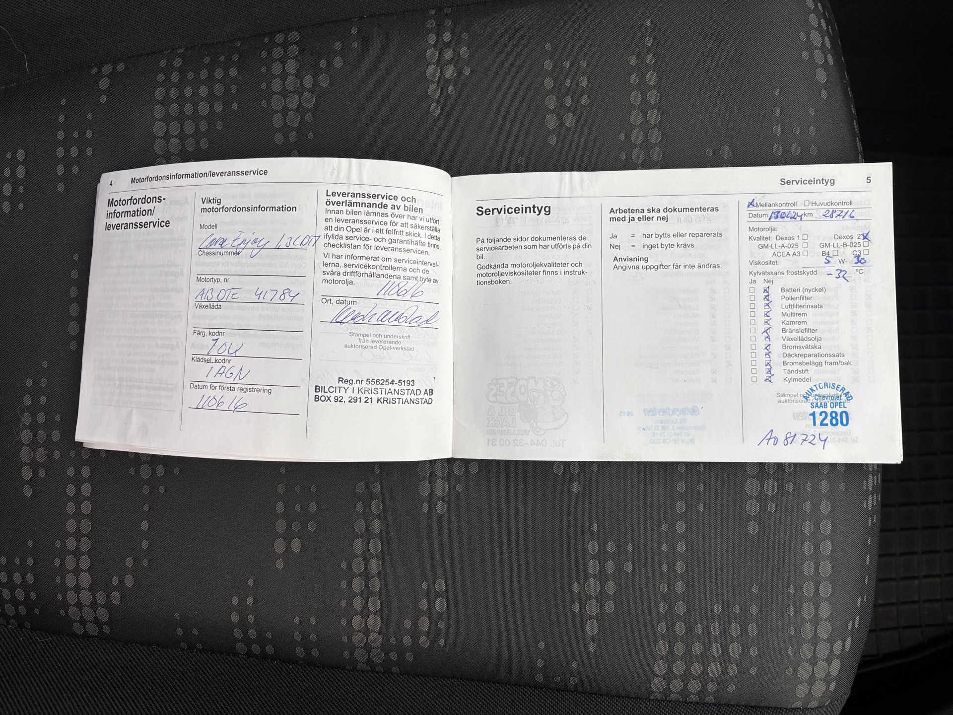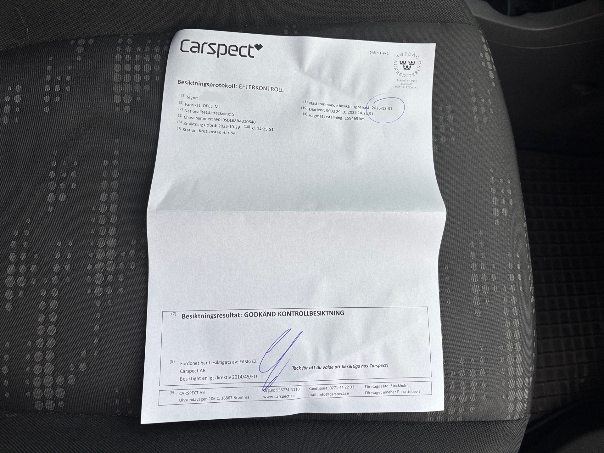 • Serie/chassinummer framgår