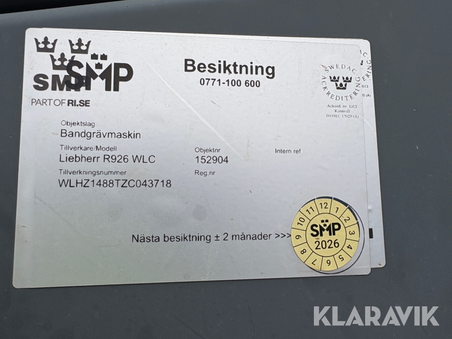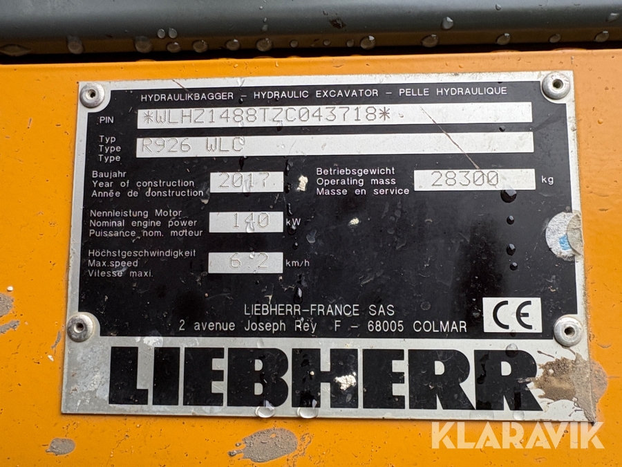 Bandgrävare Liebherr R926 WLC 3 Skopor