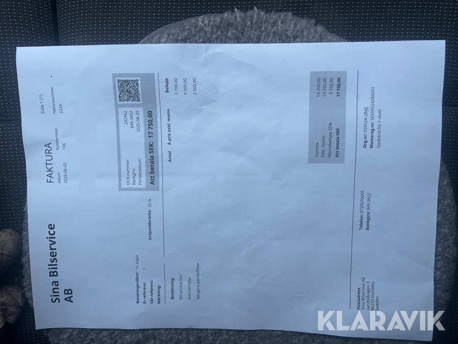 Du som köpare är skyldig att kontrollera objektet vid hämtning. Skiljer sig något avsevärt jämfört med informationen på klaravik.se? Kontakta då Klaravik innan du tar objektet från platsen. Läs fullständiga köpvillkor.