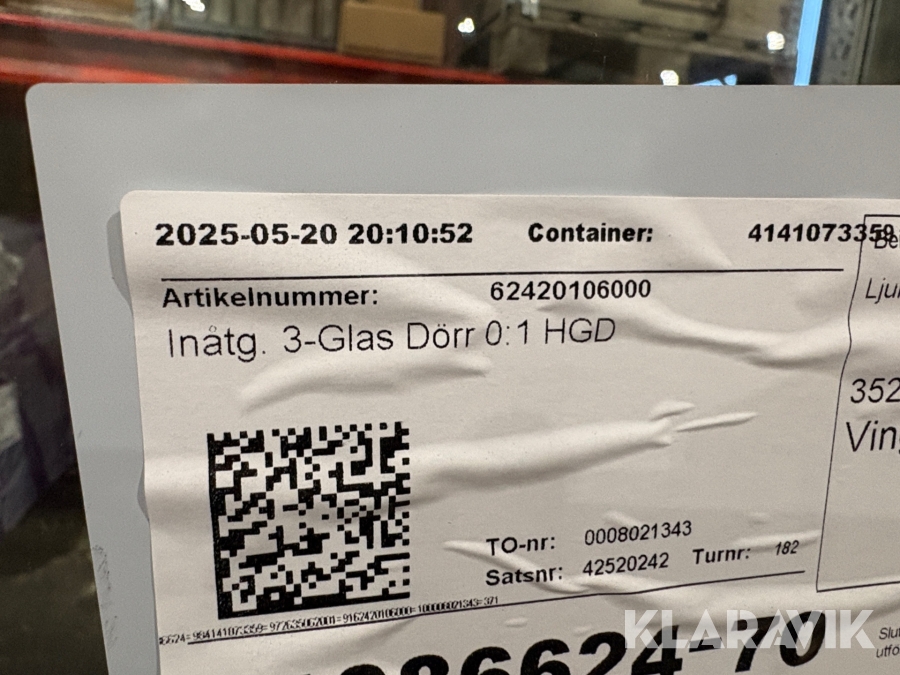 Boka frakt? Det finns ingen specifik information om frakt för just det här objektet, men om du skickar oss en förfrågan via vårt fraktformulär, så undersöker vi möjligheten. Paket, EU-pall eller större maskin? Klaravik har fraktavtal med Schenker och i de fall vi kan hjälpa till med frakt gäller det objekt som ryms i paket eller inom en EU-pall (upp till 120*80 cm och 990 kg). Det går att beställa frakt inom Sverige, dock inte till utlandet. Vid frakt på större maskiner rekommenderar vi gärna transportföretag som du kan kontakta.