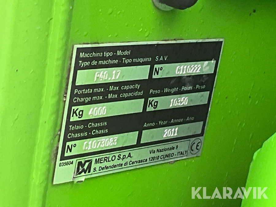 • Serie/chassinummer framgår