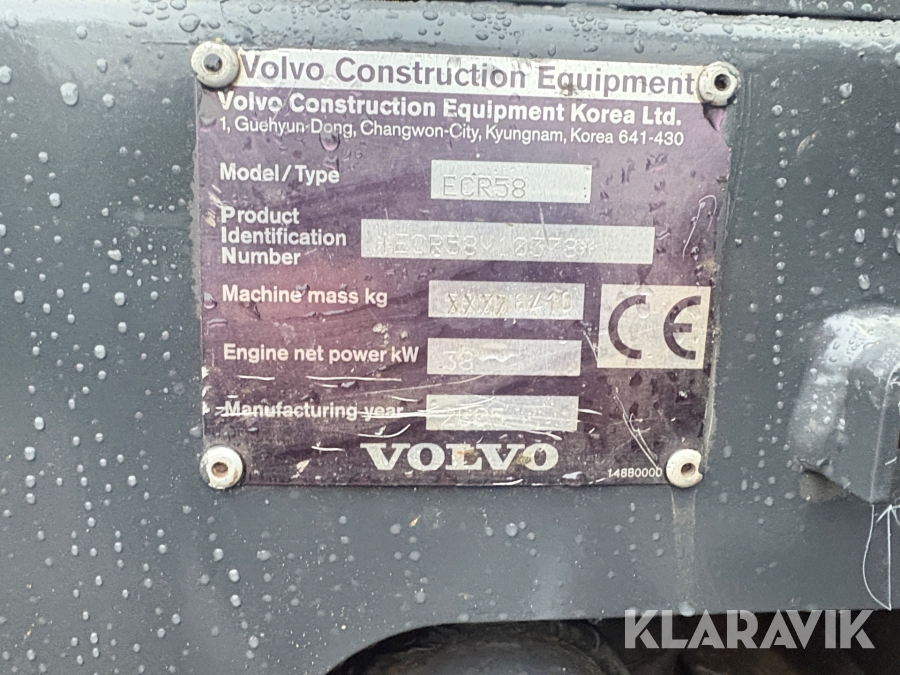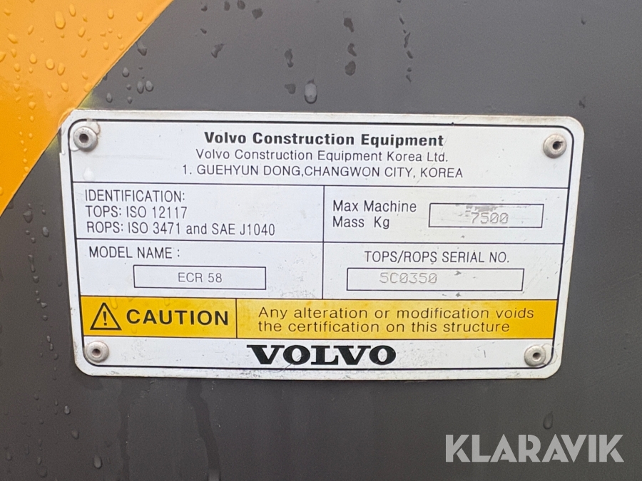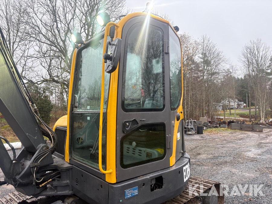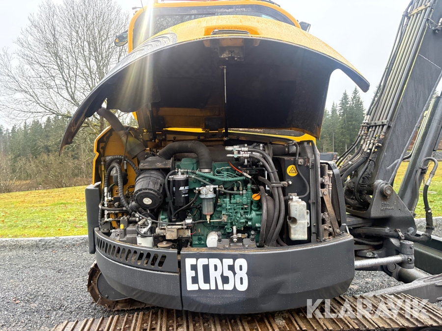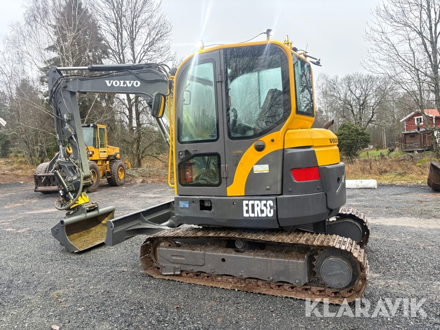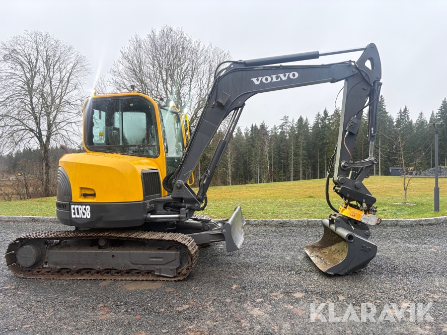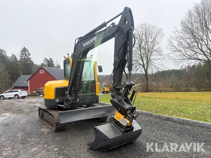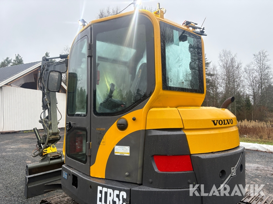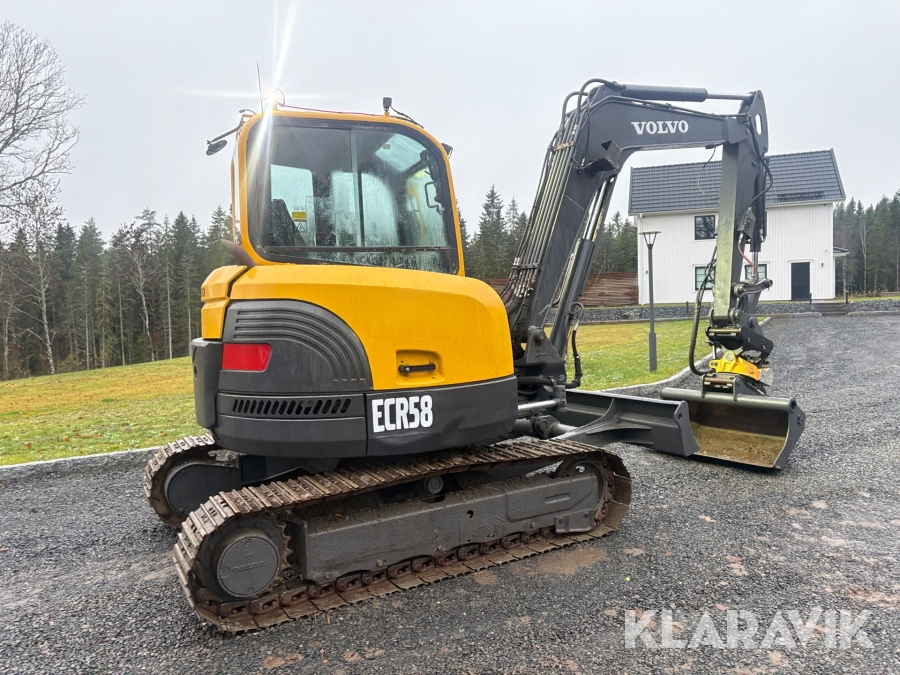 Grävmaskin Volvo ECR58 med tiltrotator och flera skopor