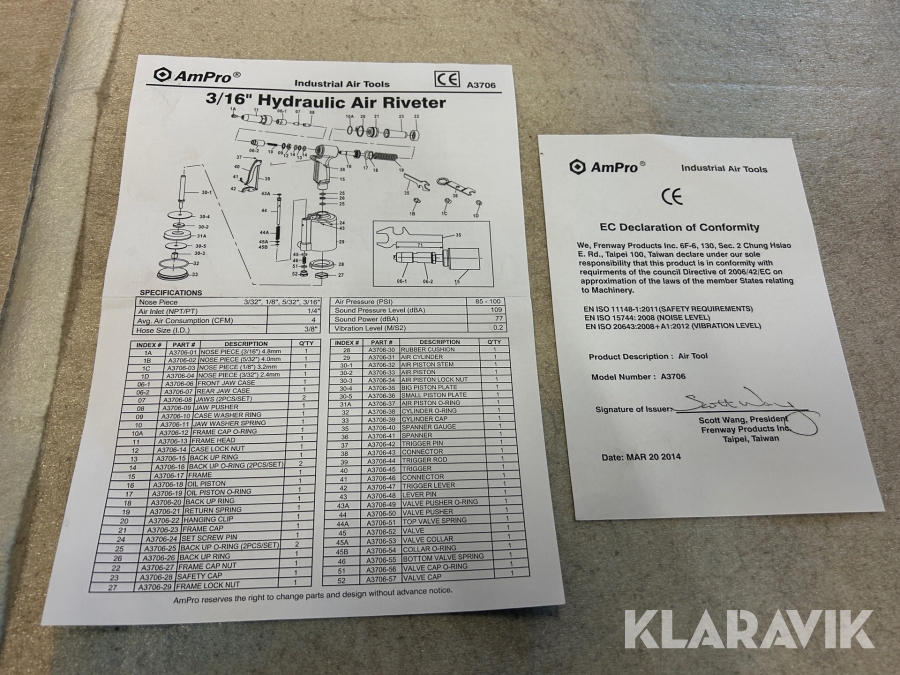 Poppnitpistol AmPro 3/16” Hydralic 1 st