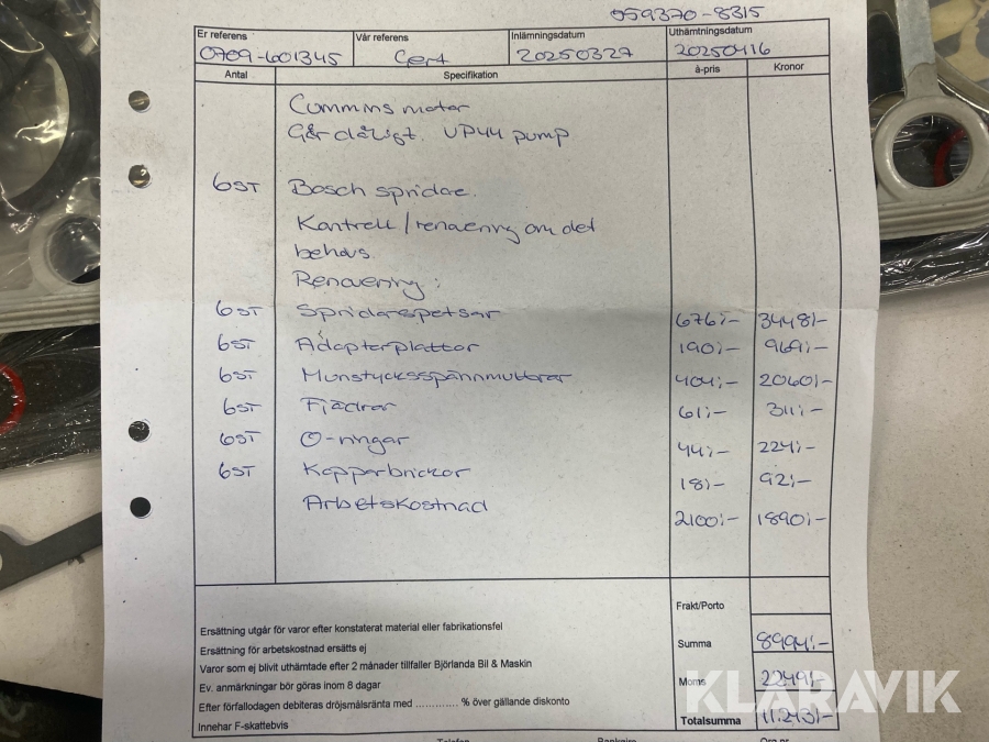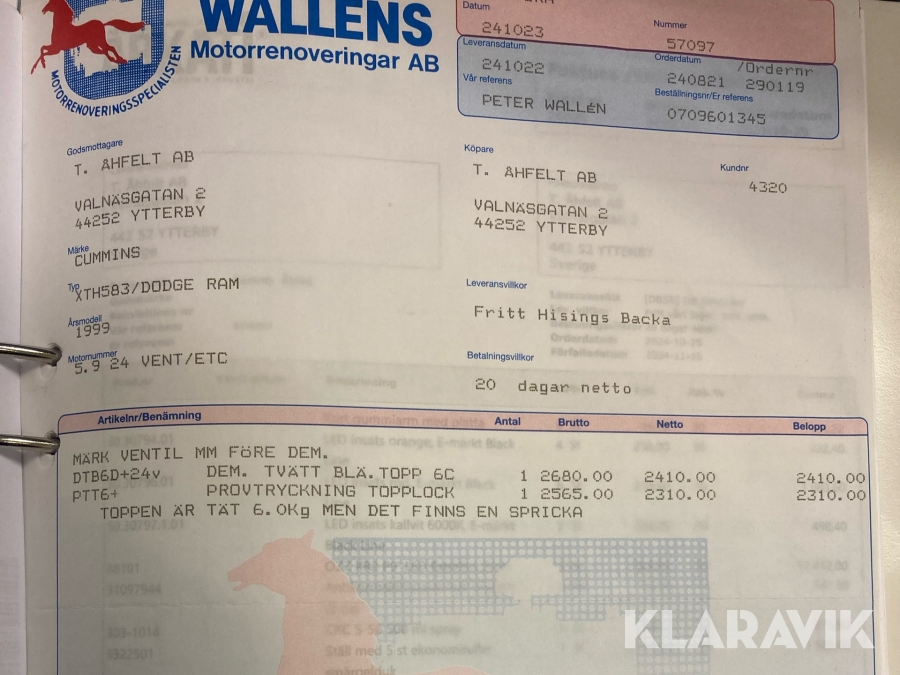 Boka frakt? Det finns ingen specifik information om frakt för just det här objektet, men om du skickar oss en förfrågan via vårt fraktformulär, så undersöker vi möjligheten. Paket, EU-pall eller större maskin? Klaravik har fraktavtal med Schenker och i de fall vi kan hjälpa till med frakt gäller det objekt som ryms i paket eller inom en EU-pall (upp till 120*80 cm och 990 kg). Det går att beställa frakt inom Sverige, dock inte till utlandet. Vid frakt på större maskiner rekommenderar vi gärna transportföretag som du kan kontakta.