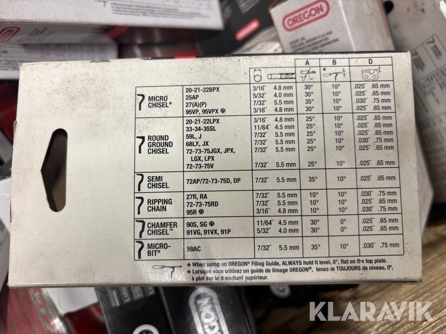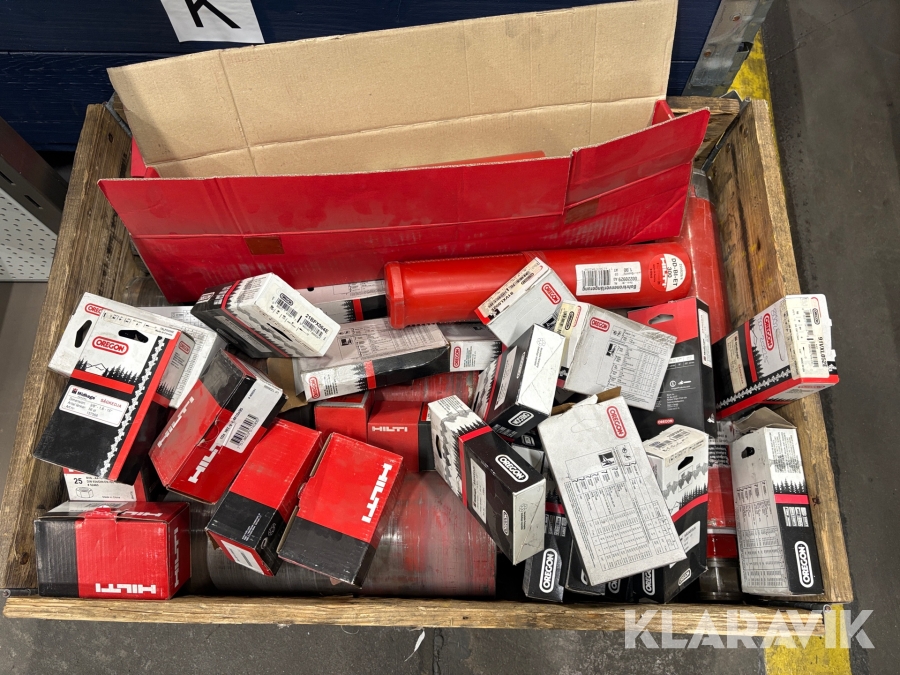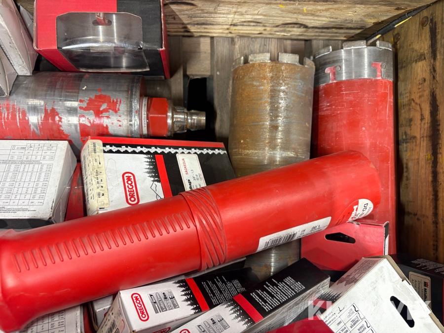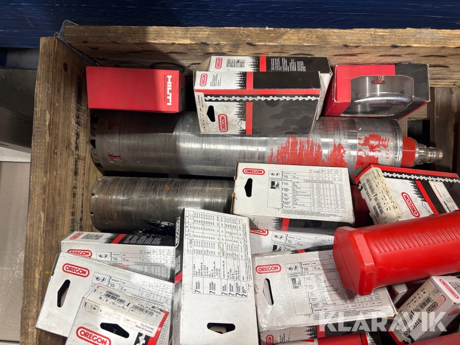 Pall med sågkedjor, kärnborr, bult Hilti, Oregon