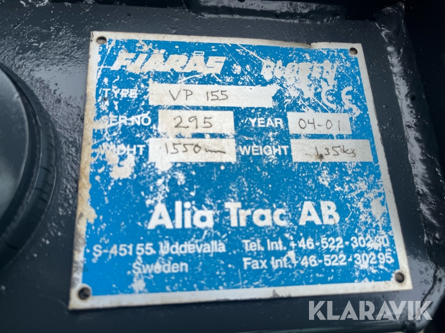 Boka frakt? Det finns ingen specifik information om frakt för just det här objektet, men om du skickar oss en förfrågan via vårt fraktformulär, så undersöker vi möjligheten. Paket, EU-pall eller större maskin? Klaravik har fraktavtal med Schenker och i de fall vi kan hjälpa till med frakt gäller det objekt som ryms i paket eller inom en EU-pall (upp till 120*80 cm och 990 kg). Det går att beställa frakt inom Sverige, dock inte till utlandet. Vid frakt på större maskiner rekommenderar vi gärna transportföretag som du kan kontakta.