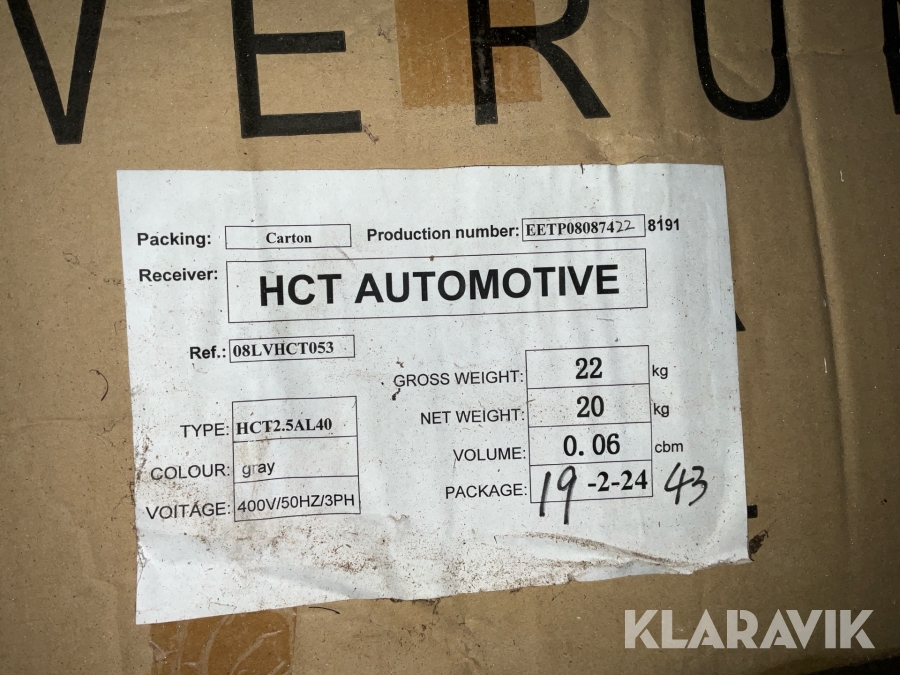 Boka frakt? Det finns ingen specifik information om frakt för just det här objektet, men om du skickar oss en förfrågan via vårt fraktformulär, så undersöker vi möjligheten. Paket, EU-pall eller större maskin? Klaravik har fraktavtal med Schenker och i de fall vi kan hjälpa till med frakt gäller det objekt som ryms i paket eller inom en EU-pall (upp till 120*80 cm och 990 kg). Det går att beställa frakt inom Sverige, dock inte till utlandet. Vid frakt på större maskiner rekommenderar vi gärna transportföretag som du kan kontakta.