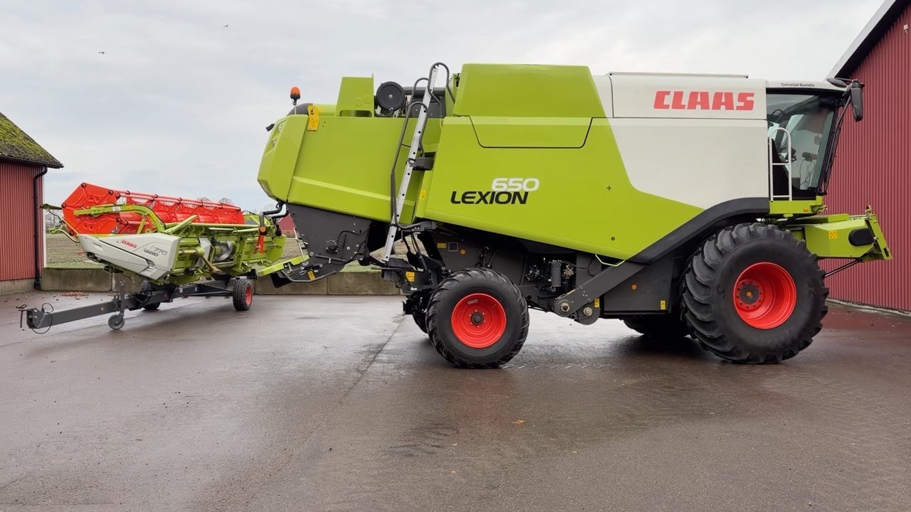 Skördetröska Claas Lexion 650 med V770 Skärbord på vagn