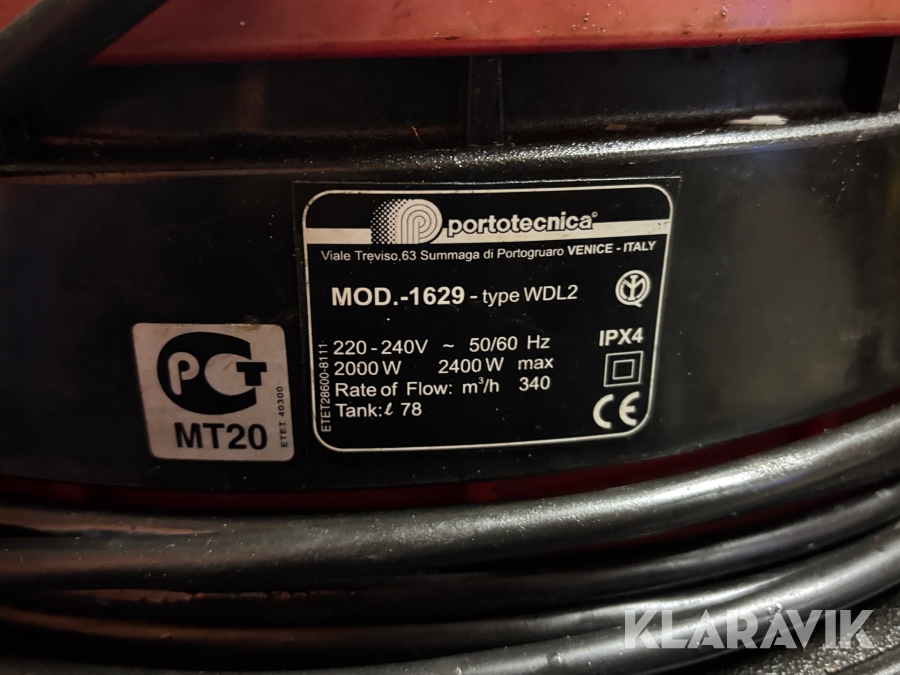 Industridammsugare Portotecnica 1629 WDL2