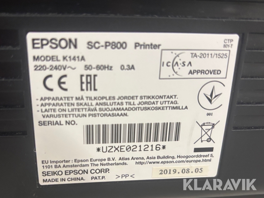Fotoskrivare Epson SureColor P800 K141A med 8 färger