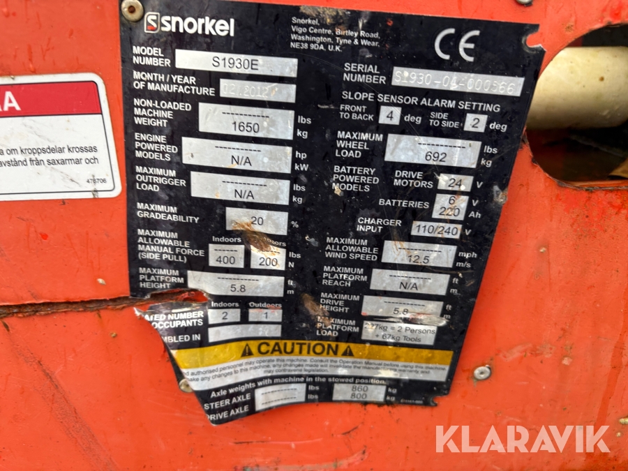 Saxlift Snorkel S1930E