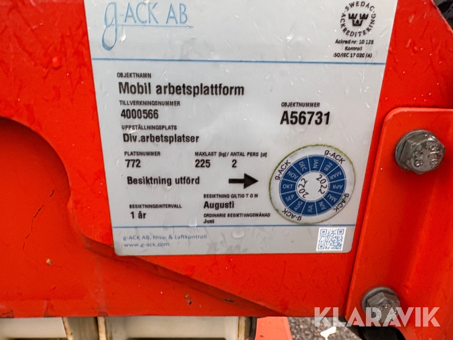 Du som köpare är skyldig att kontrollera objektet vid hämtning. Skiljer sig något avsevärt jämfört med informationen på klaravik.se? Kontakta då Klaravik innan du tar objektet från platsen. Läs fullständiga köpvillkor.
