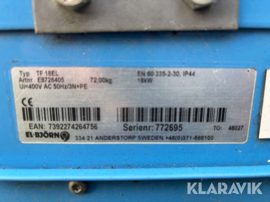 Boka frakt? Det finns ingen specifik information om frakt för just det här objektet, men om du skickar oss en förfrågan via vårt fraktformulär, så undersöker vi möjligheten. Paket, EU-pall eller större maskin? Klaravik har fraktavtal med Schenker och i de fall vi kan hjälpa till med frakt gäller det objekt som ryms i paket eller inom en EU-pall (upp till 120*80 cm och 990 kg). Det går att beställa frakt inom Sverige, dock inte till utlandet. Vid frakt på större maskiner rekommenderar vi gärna transportföretag som du kan kontakta.