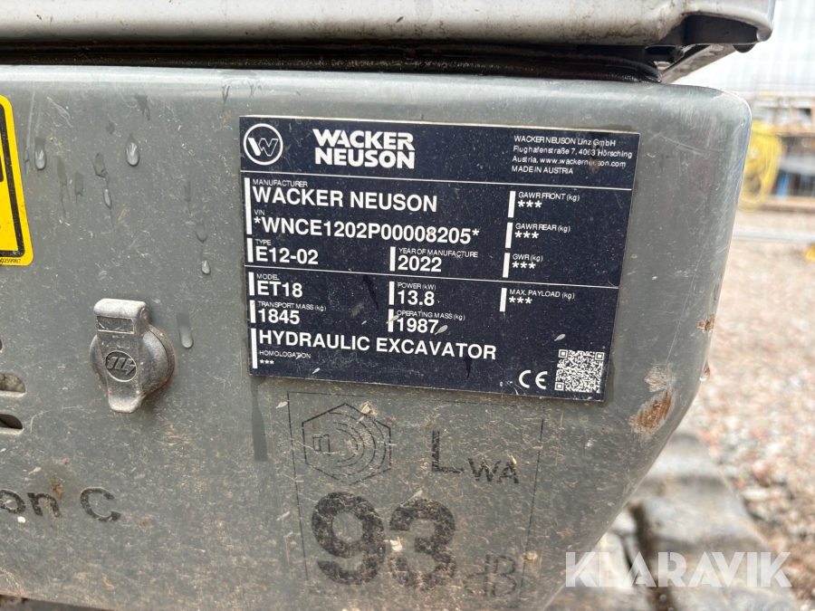 Grävmaskin Wacker Neuson ET18 med 3 redskap