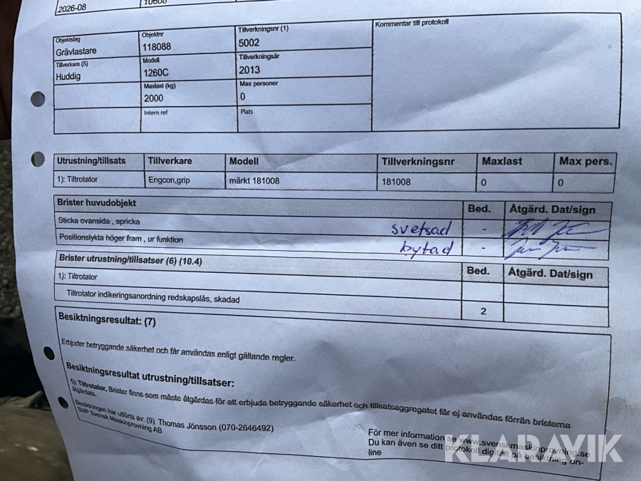 Bilder på reparationer av senaste besiktning