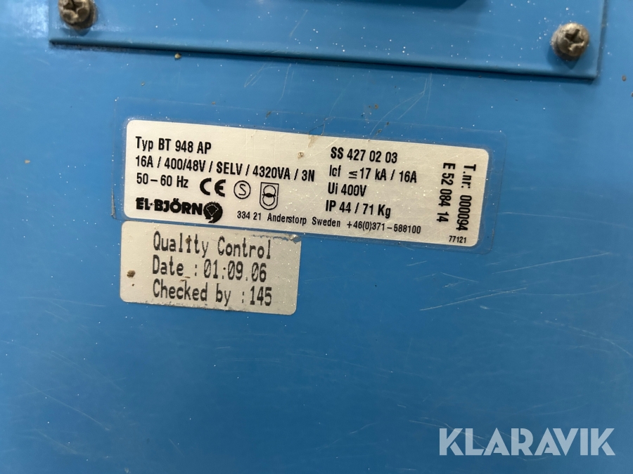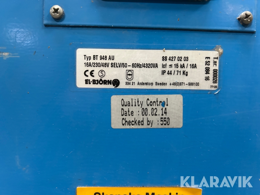 Boka frakt? Det finns ingen specifik information om frakt för just det här objektet, men om du skickar oss en förfrågan via vårt fraktformulär, så undersöker vi möjligheten. Paket, EU-pall eller större maskin? Klaravik har fraktavtal med Schenker och i de fall vi kan hjälpa till med frakt gäller det objekt som ryms i paket eller inom en EU-pall (upp till 120*80 cm och 990 kg). Det går att beställa frakt inom Sverige, dock inte till utlandet. Vid frakt på större maskiner rekommenderar vi gärna transportföretag som du kan kontakta.