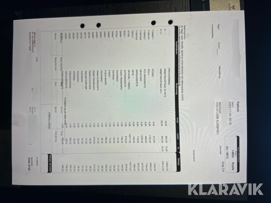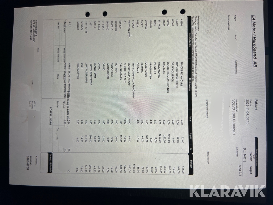 Boka frakt? Det finns ingen specifik information om frakt för just det här objektet, men om du skickar oss en förfrågan via vårt fraktformulär, så undersöker vi möjligheten. Paket, EU-pall eller större maskin? Klaravik har fraktavtal med Schenker och i de fall vi kan hjälpa till med frakt gäller det objekt som ryms i paket eller inom en EU-pall (upp till 120*80 cm och 990 kg). Det går att beställa frakt inom Sverige, dock inte till utlandet. Vid frakt på större maskiner rekommenderar vi gärna transportföretag som du kan kontakta.