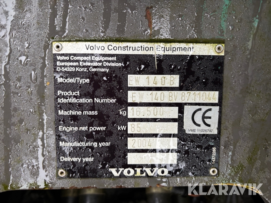Grävmaskin Volvo EW140B med tiltrotator, tippkärra och 7 st redskap