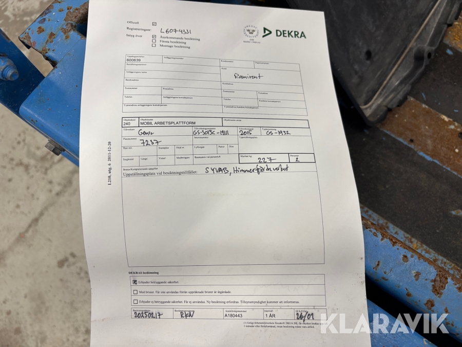 Du som köpare är skyldig att kontrollera objektet vid hämtning. Skiljer sig något avsevärt jämfört med informationen på klaravik.se? Kontakta då Klaravik innan du tar objektet från platsen. Läs fullständiga köpvillkor.