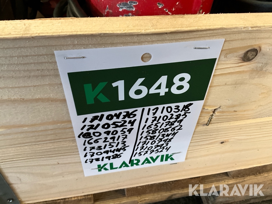 Pallar/emballage ingår EJ i auktionen men kan köpas till på plats vid upphämtningen.