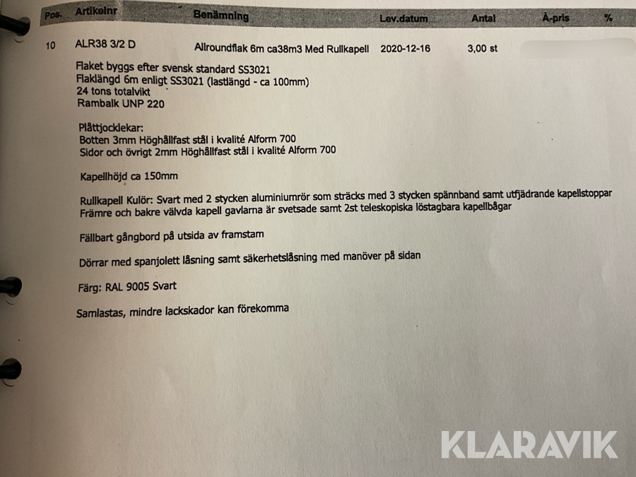 Du som köpare är skyldig att kontrollera objektet vid hämtning. Skiljer sig något avsevärt jämfört med informationen på klaravik.se? Kontakta då Klaravik innan du tar objektet från platsen. Läs fullständiga köpvillkor.