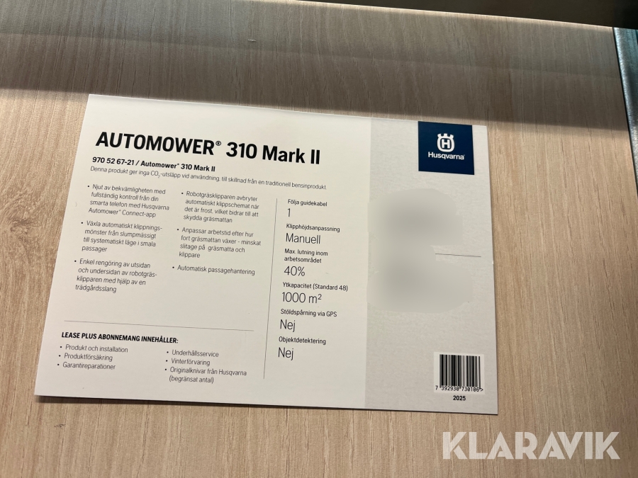 Du som köpare är skyldig att kontrollera objektet vid hämtning. Skiljer sig något avsevärt jämfört med informationen på klaravik.se? Kontakta då Klaravik innan du tar objektet från platsen. Läs fullständiga köpvillkor.