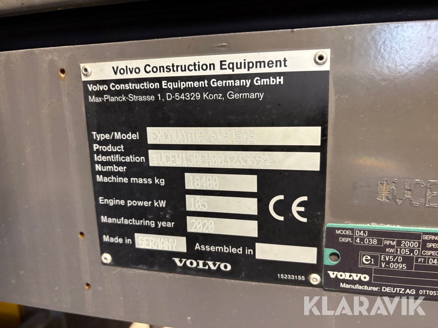 Grävmaskin / Hjulgrävare Volvo EWR150E med tiltrotator, 3D Leica, kärra & redskap