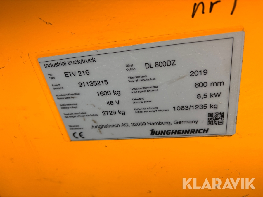 Skjutstativtruck Jungheinrich ETV 216