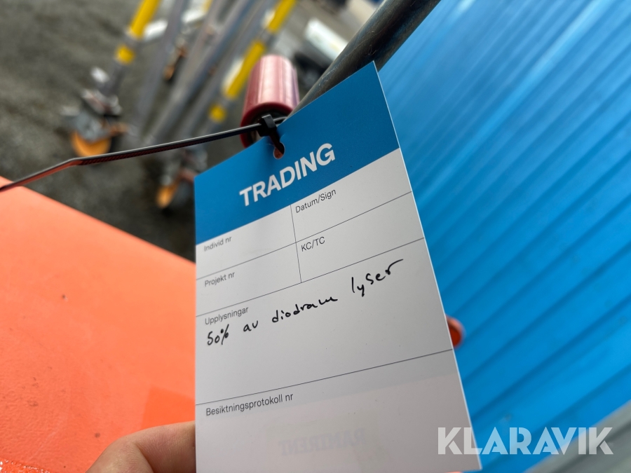 Pga platsbrist är det viktigt att du som köpare hämtar inom 12 dagar från auktionsavslut. Vid frågor om frakt kontakta trade@ramirent.se.
