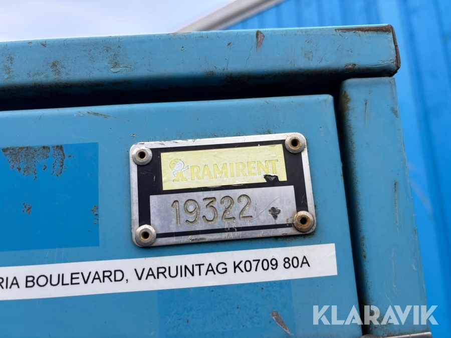 Pga platsbrist är det viktigt att du som köpare hämtar inom 12 dagar från auktionsavslut. Vid frågor om frakt kontakta trade@ramirent.se.