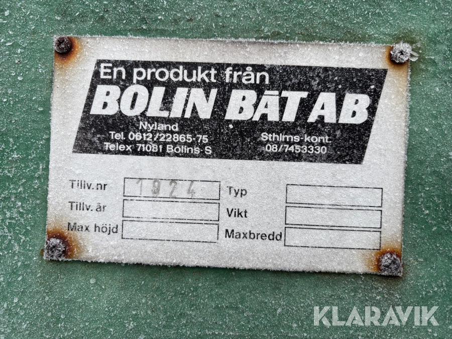 Boka frakt? Det finns ingen specifik information om frakt för just det här objektet, men om du skickar oss en förfrågan via vårt fraktformulär, så undersöker vi möjligheten. Paket, EU-pall eller större maskin? Klaravik har fraktavtal med Schenker och i de fall vi kan hjälpa till med frakt gäller det objekt som ryms i paket eller inom en EU-pall (upp till 120*80 cm och 990 kg). Det går att beställa frakt inom Sverige, dock inte till utlandet. Vid frakt på större maskiner rekommenderar vi gärna transportföretag som du kan kontakta.