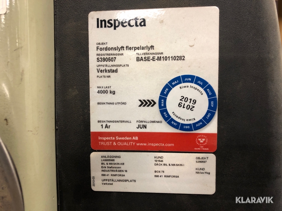 Tvåpelarlyft 4 ton