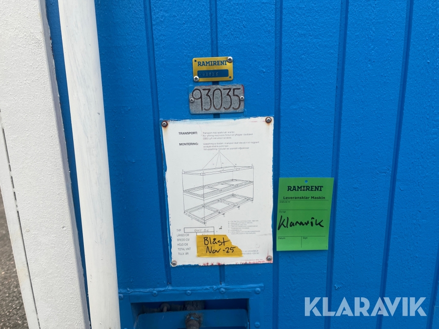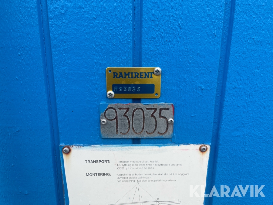 Pga platsbrist är det viktigt att du som köpare hämtar inom 12 dagar från auktionsavslut. Vid frågor om frakt kontakta trade@ramirent.se.