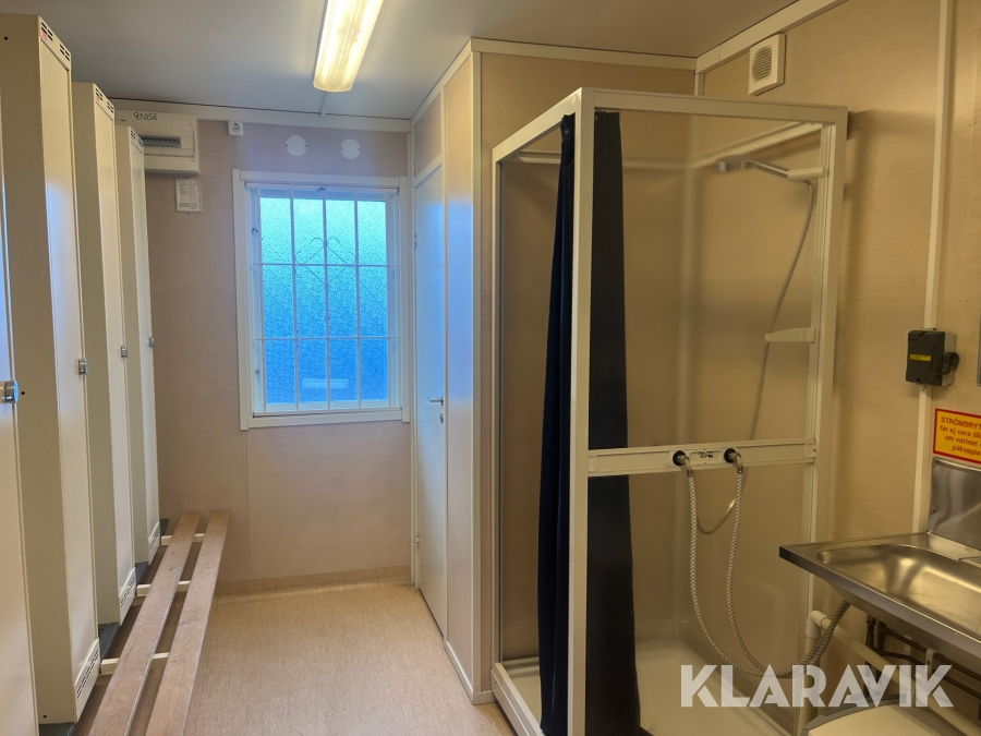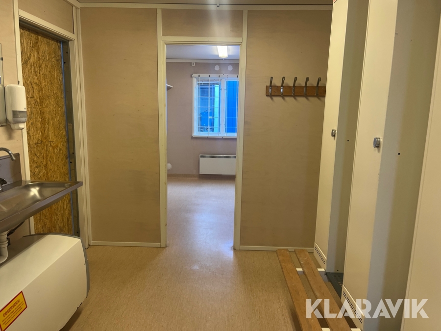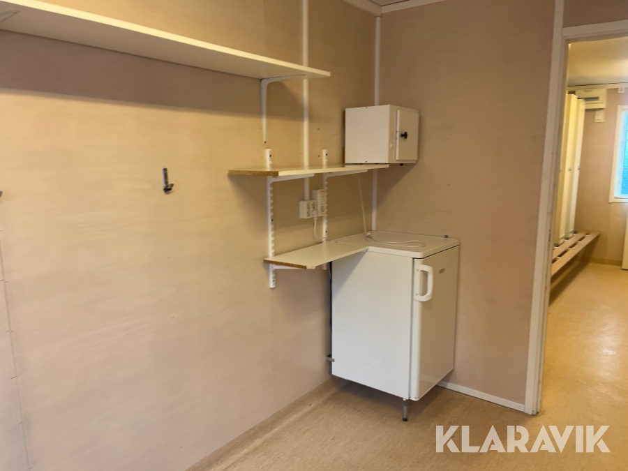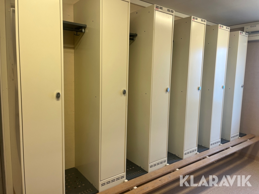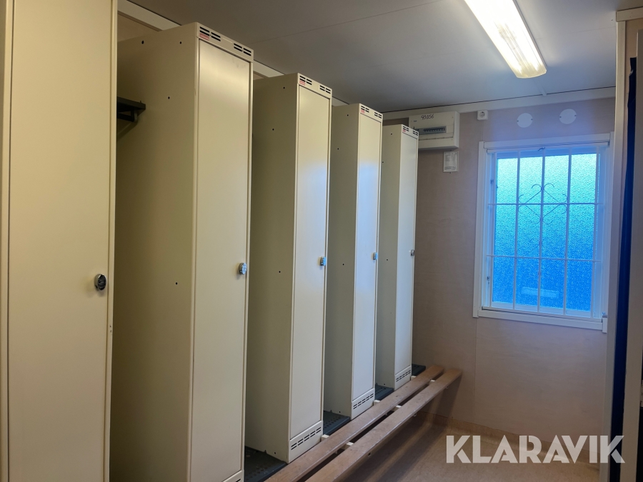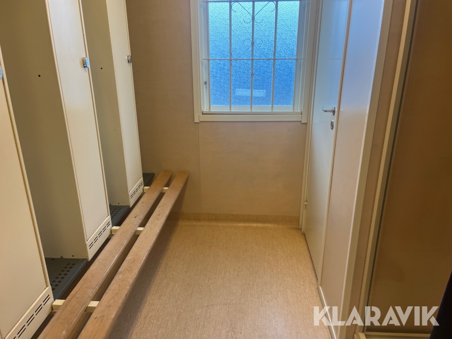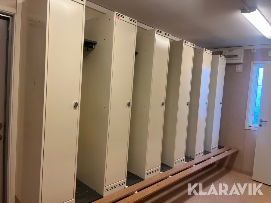 Mat och omklädningsplats för sex personer.