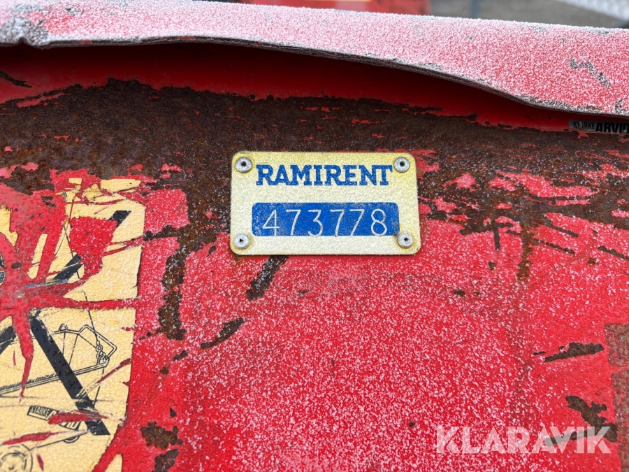 Pga platsbrist är det viktigt att du som köpare hämtar inom 12 dagar från auktionsavslut. Vid frågor om frakt kontakta trade@ramirent.se.