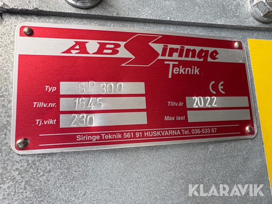 Boka frakt? Det finns ingen specifik information om frakt för just det här objektet, men om du skickar oss en förfrågan via vårt fraktformulär, så undersöker vi möjligheten. Paket, EU-pall eller större maskin? Klaravik har fraktavtal med Schenker och i de fall vi kan hjälpa till med frakt gäller det objekt som ryms i paket eller inom en EU-pall (upp till 120*80 cm och 990 kg). Det går att beställa frakt inom Sverige, dock inte till utlandet. Vid frakt på större maskiner rekommenderar vi gärna transportföretag som du kan kontakta.
