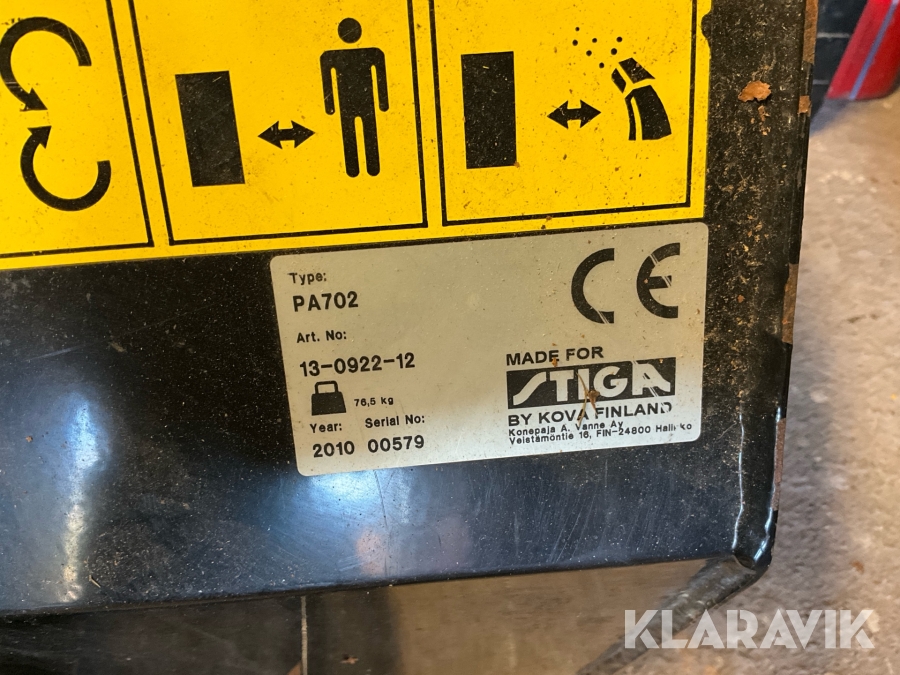 Snöslunga Stiga PA702 till åkgräsklippare