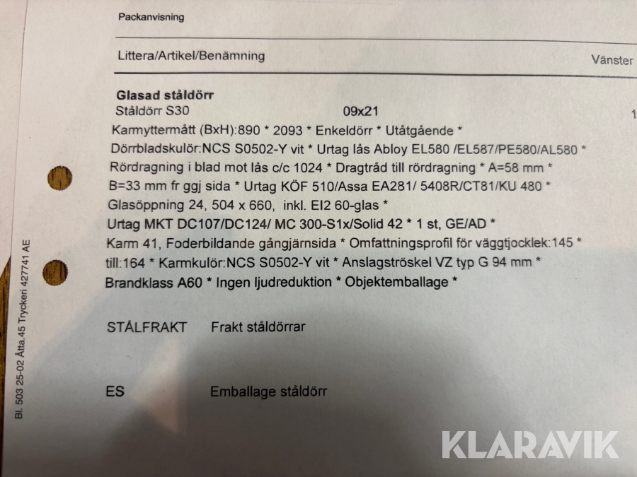 Boka frakt? Det finns ingen specifik information om frakt för just det här objektet, men om du skickar oss en förfrågan via vårt fraktformulär, så undersöker vi möjligheten. Paket, EU-pall eller större maskin? Klaravik har fraktavtal med Schenker och i de fall vi kan hjälpa till med frakt gäller det objekt som ryms i paket eller inom en EU-pall (upp till 120*80 cm och 990 kg). Det går att beställa frakt inom Sverige, dock inte till utlandet. Vid frakt på större maskiner rekommenderar vi gärna transportföretag som du kan kontakta.